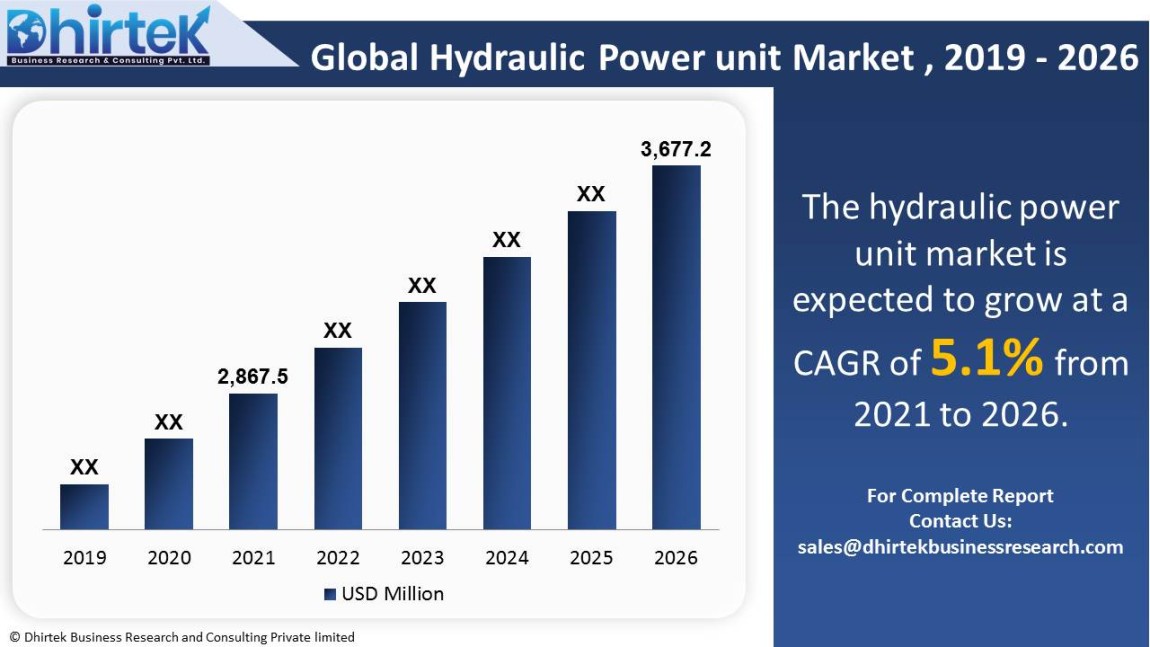 The global market for hydraulic power unit is expected to grow from $ 2,867.5 million in 2021 to $ 3,677.2 million in 2026. The market is expected to grow at a CAGR of 5.1% over the forecast period (2021-2026). Some of the market's key participants are Atlas Copco, Bosch Rexroth, Brevini Fluid Power, Bucher Hydraulics, Dynex, Eaton, Fast Flow Pump, Foster Manufacturing, HYDAC, Husqvarna, Hydraproducts, Hydratight, ICS Blount, JCB Beaver, Jining Roadway Machinery, Kohler Engines, Matweld, Nachi-Fujikoshi, Parker Hannifin, Poclain Hydraulics, Stanley Infrastructure, Weber Hydraulik. This report intends to identify significant growth areas and to explore relevant market strategies. This in-depth analysis delves into the global market for hydraulic power unit. The primary goal of this research is to examine the potential growth areas, significant trends, and the market's impact on the industry. The report also reviews the adoption of hydraulic power unit in both established and emerging markets.