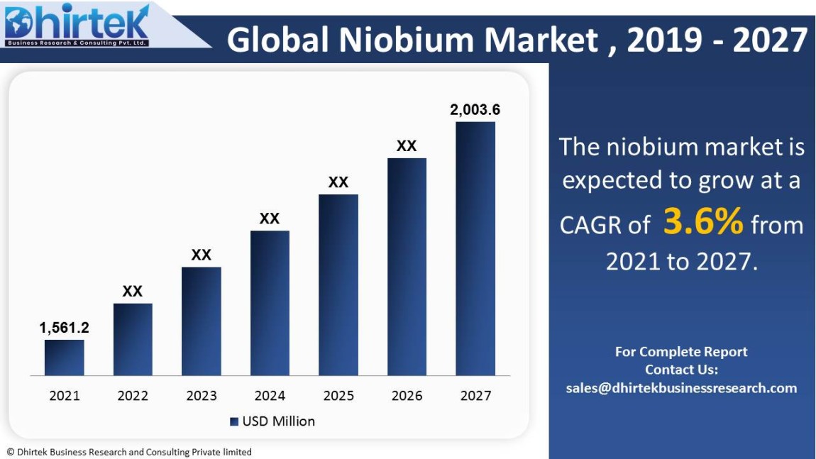The global market for niobium is expected to grow from $ 1,561.2 million in 2021 to $ 2,003.6 million in 2027. The market is expected to grow at a CAGR of 3.6% over the forecast period (2021-2027). Some of the market's key participants are Anglo American, CMBB, Hc Starck Smelting GmbH & Co Kg, Niobec, Nordmet SA. This report intends to identify significant growth areas and to explore relevant market strategies. This in-depth analysis delves into the global market for niobium. The primary goal of this research is to examine the potential growth areas, significant trends, and the market's impact on the industry. The report also reviews the adoption of niobium in both established and emerging markets.