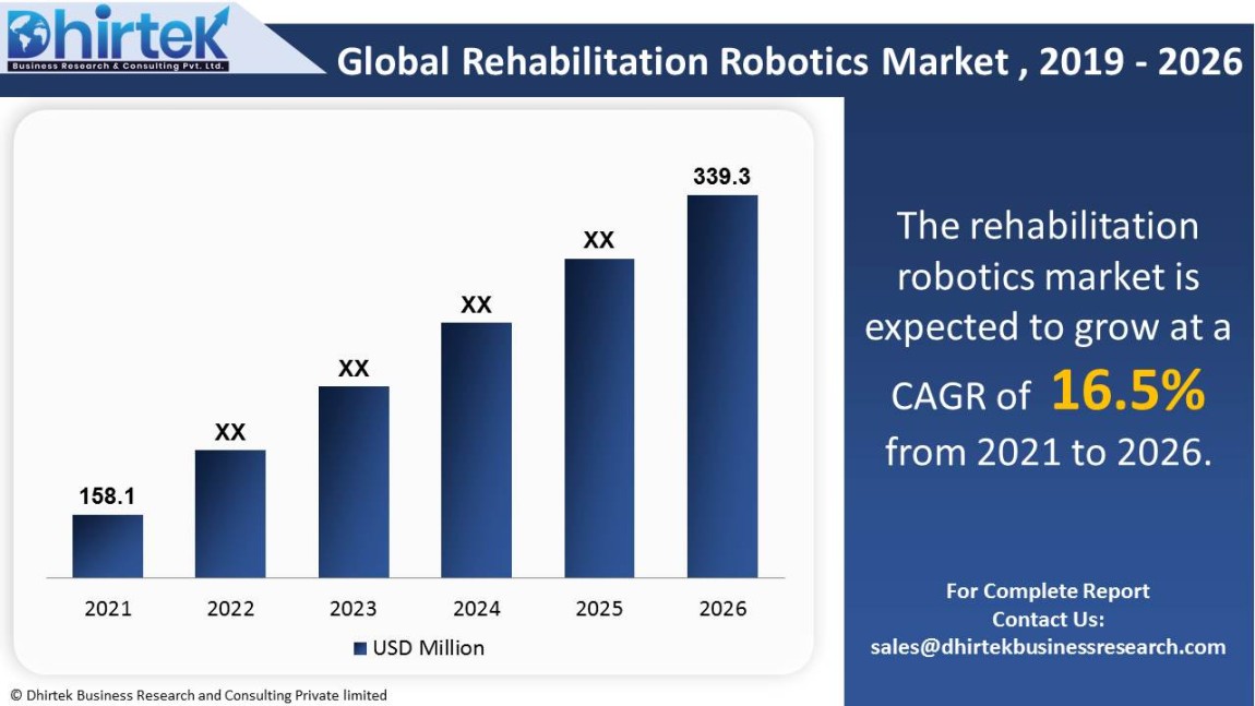 The global market for rehabilitation robotics is expected to grow from $ 158.1 million in 2021 to $ 339.3 million in 2026. The market is expected to grow at a CAGR of 16.5% over the forecast period (2021-2026). Some of the market's key participants are AlterG, Aretech, Bionik, Ekso Bionics, Focal Meditech, Hocoma, Honda Motor, Instead Technologies, MRISAR, Motorika, Myomo, Rex Bionics, SF Robot, Tyromotion. This report intends to identify significant growth areas and to explore relevant market strategies. This in-depth analysis delves into the global market for rehabilitation robotics. The primary goal of this research is to examine the potential growth areas, significant trends, and the market's impact on the industry. The report also reviews the adoption of rehabilitation robotics in both established and emerging markets.